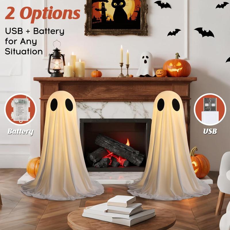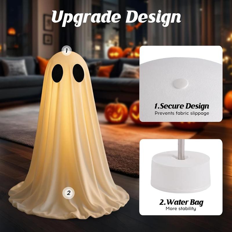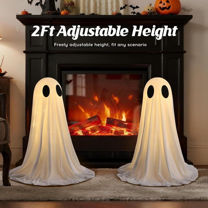 The 2FT tall ghost decoration is perfectly suitable for tabletops, mantels, shelves and front porches, making it an essential indoor Halloween decoration.